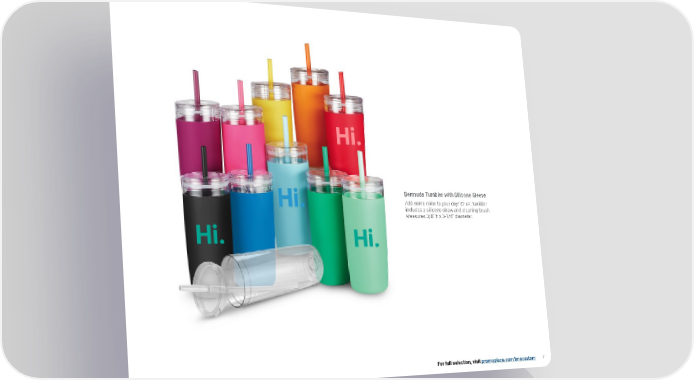 Bermuda Tumbler with Silicone Sleeve Add some color to your day! 32 oz. tumbler includes a silicone straw and cleaning brush. Measures 3/8" h x 3-1/8" diameter. For full selection, visit promoplace.com/imscustom 7