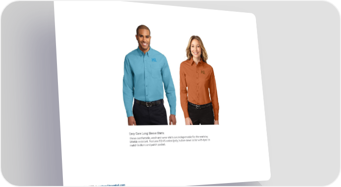 Easy Care Long Sleeve Shirts These comfortable, wash-and-wear shirts are indispensable for the workday. Wrinkle resistant. Features 55/45 cotton/poly, button-down collar with dyed-to- match buttons and patch pocket. 6 1.800.421.4332 / [email protected]