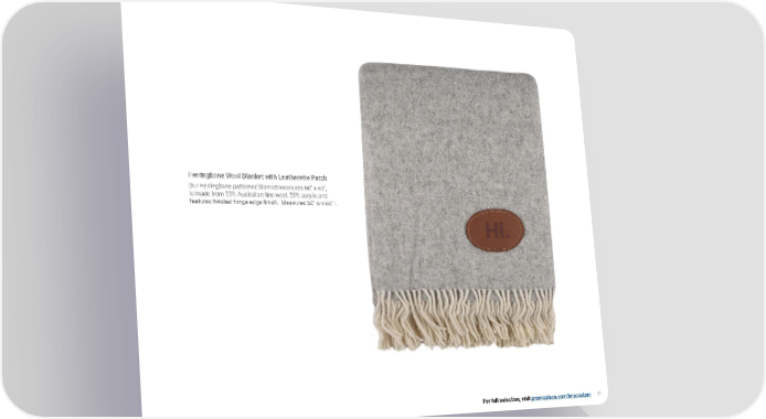 Herringbone Wool Blanket with Leatherette Patch Our Herringbone patterned blanket measures 50" x 60", is made from 50% Australian fine wool, 50% acrylic and features twisted fringe edge finish. Measures 50" w x 60" L. For full selection, visit promoplace.com/imscustom 21